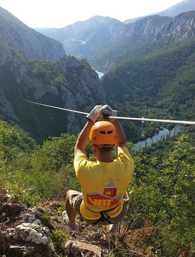 Za one koji ne znaju što je zapravo zipline, objasnit ćemo da se radi o spuštanju niz žice različitih duljina i nagiba uz pomoć opreme koja je ista kao ona koju koriste penjači i HGSS-ovci, a sve to kroz zadivljujuću prirodu, u fantastičnom kanjonu iznad rijeke Cetine nedaleko Omiša.
