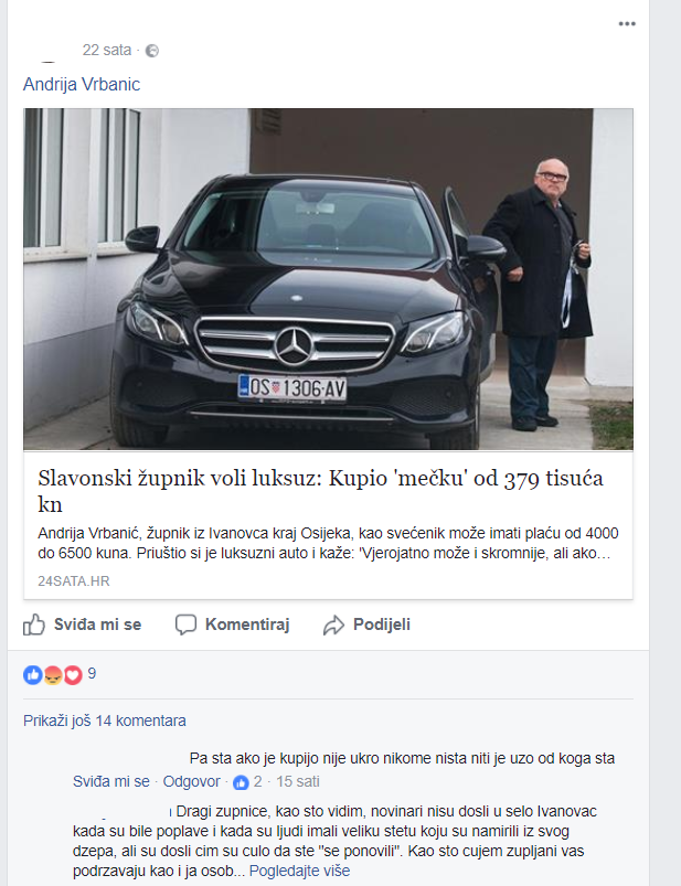 Njegovi župljani ga, sudeći po komentarima ispod teksta o prinovi u voznom parku, čak i podržavaju. A kakve stavove zastupa Božji pastir pogledajte u nekoliko screenshotova s njegovog Facebooka.