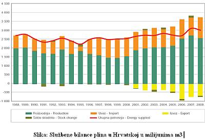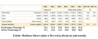 Kako bi ostvarili taj suludi otkup prodanog beznačajnog skladišta plina (sasvim dovoljnog za sadašnje potrebe i proizvodnju plina Hrvatske) naglašavaju njegovu „važnost“, te tvrde da Hrvatska nema dovoljno plina vlastite proizvodnje i da bi zadovoljavala svoje potrebe mora uvoziti plin (po oko 0,4 USD/m3) za oko 40% svojih potreba. To bi bilo točno da Hrvatska ne izvozi (po 0,063 USD/m3 ili 6-8 puta nižoj cijeni nego što ga uvozi iz Ruske federacije) u bescjenje do 33 % proizvedenog plina u Hrvatskoj, što dakako „zaboravljaju“ obznaniti stanovništvu. Službene bilance plina u Hrvatskoj prikazane su grafički i brojčano u slici i tabeli. Da nisu sklopili ugovor o prodaji plina Talijanima, Hrvatska bi uz racionalizaciju potrošnje plina (u HEP-u i Petrokemiji) još neko vrijeme imala dovoljno plina i bez uvoza skupog plina iz Ruske federacije.
