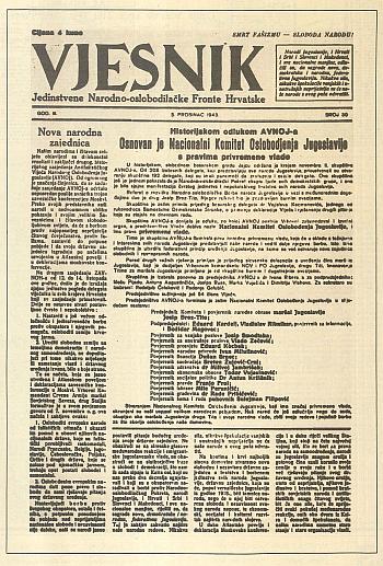 Početkom prosinca 1943. godine Vjesnik je na naslovnici donio izvještaj s