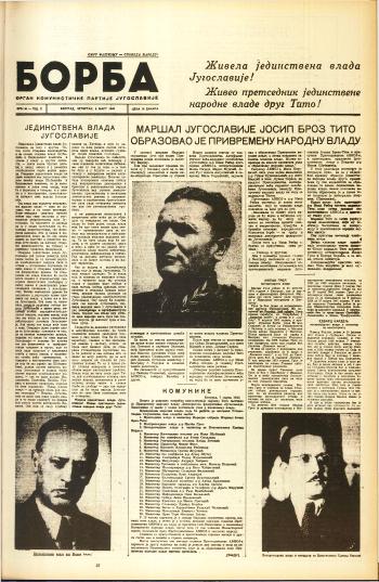 "Maršal Jugoslavije Josip Broz Tito obrazovao je privremenu vladu."