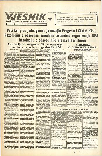 a Vjesnik objavio Rezoluciju V. Kongresa o odnosu KPJ prema Informbirou.