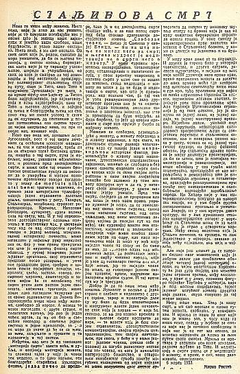 U ožujku 1953. godine umire Josif Visarionovič Staljin. Jugoslavija
