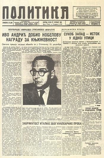 akademija dodijelila je Nobelovu nagradu za književnost Ivi Andriću.