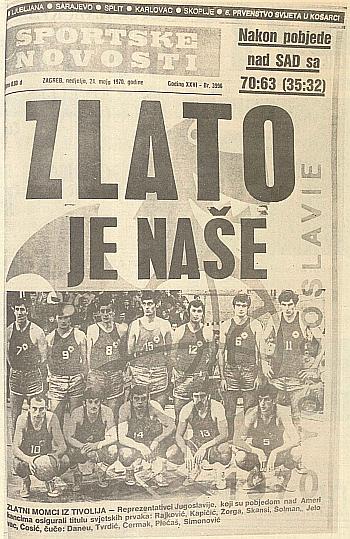 igrano u ljubljanskoj dvorani Tivoli. Jugoslaviju je do zlata vodio