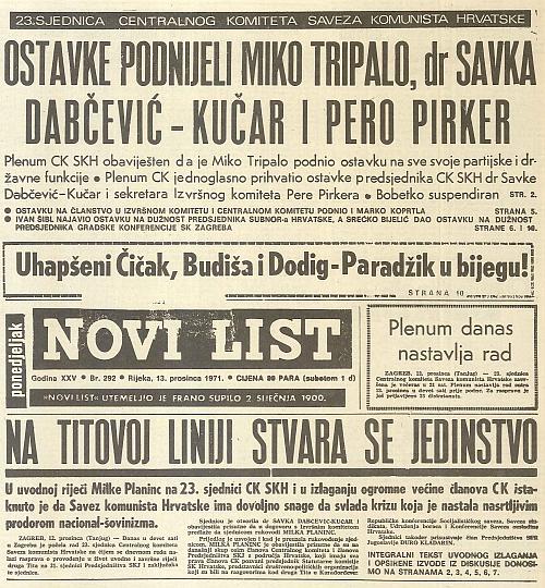 Pero Pirker podnijeli su ostavke. Zbog nacionalizma pritvoreni su Čičak, Budiša i Dodig. Savez komunista Hrvatske ima dovoljno snage da svlada krizu koja je nastala nasrtljivim