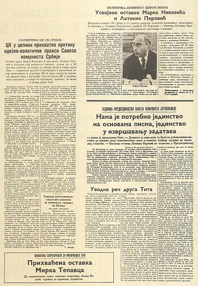 Te godine, naime, pao je Aleksandar Ranković Marko. Smijenjen je s dužnosti