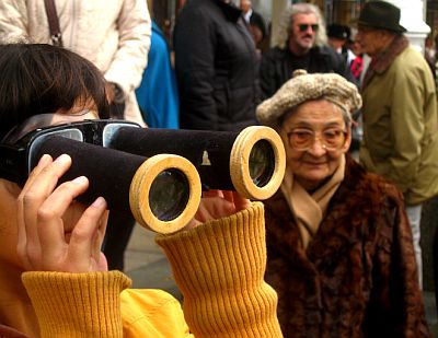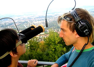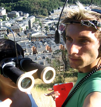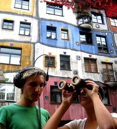 Upoznali smo se slučajno, preko Hospitality Cluba, njima je trebao smještaj, a ja sam, osim urođenog altruizma, pala na priču o potrazi za bojama europskih glavnih gradova. Od samog početka, pomalo narušena očekivanja - umjesto dvoje relaksiranih luckastih putnika, upoznajem dvoje vrlo discipliniranih radnika - svaku večer sortiraju se slike, bilježe cijene osnovnih živežnih namirnica, pišu dojmovi, vraćaju dugovi do u lipu. Moon Ribas i Neil Harbisson iz okolice Barcelone u potrazi za bojama su od kolovoza i dosad su obišli 16 gradova, a kolore ne određuju po dojmu, već egzaktnim zbrojem. Dok rade, ljudi im se, kažu, uglavnom smiju ("vidi, svemirci") i radoznalo ispituju.