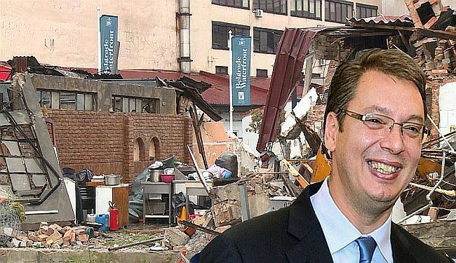 - Objekte su srušili Aleksandar Vučić, Siniša Mali i Goran Vesić, pisalo je na jednom od transparenta koje su u srijedu poslijepodne, na velikom prosvjedu protiv noćnog rušenja dijela gradske četvrti, istaknuli Beograđani i Beograđanke. Prosvjed je organizirala inicijativa Ne davimo Beograd, koja se već mjesecima bori protiv projekta Beograd na vodi. Najmoćniji zagovornik projekta srpski je premijer Aleksandar Vučić, investitori dolaze iz arapskog svijeta, a u svrhu realizacije projekta gradske vlasti Beograda već su prekršile niz zakona i urbanističkih procedura. Predstavljeni projekt Beograd na vodi postoji samo na maketi, a njegova grandioznost obrnuto je proporcionalna njegovoj izvodivosti. U inicijativi Ne davimo Beograd smatraju da se iza projekta kriju krupni financijski interesi domaćih političkih moćnika, odnosno domaćih i stranih krupnih kapitalista. Dio četvrti Savamala, koju su u noći sa 24. na 25. april srušili nepoznati ljudi pod fantomkama, također se nalazi u obuhvatu projekta Beograd na vodi. Više je nego jasno da je operacija rušenja izvedena kako bi se skratila formalno-pravna procedura oko izvlaštenja objekata. Neki od vlasnika navedenih objekata, naime, pokrenuli su sudske sporove protiv države, u namjeri da spriječe rušenje objekata u čijem su bili posjedu. Vladajući su se dosjetili kriminalnom rješenju: u rušenje objekata poslali su maskiranu bandu naoružanu bagerima i bejzbol palicama.
