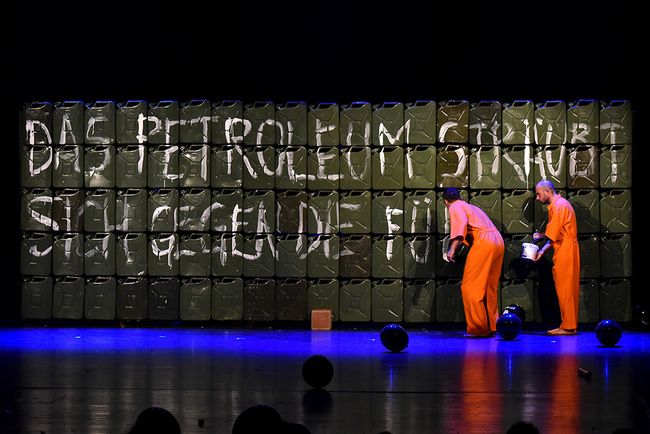 Naime, Krist silazi sa križa sastavljenog od kanistera za naftu, prije tog njegovog silaska, taj križ bio je sastavni dio od stotinjak takvih istih kanistera koji su dominirali pozornicom, oni su jasan kazališni znak i ideja koju ova predstava nosi. Ta će se ideja čak nedvosmisleno reći, glasno iskazati u predstavi: "kada će Europa vratiti ono što je stoljećima pljačkala", i tu je Frljić više nego jasan i čitljiv. Stoga sa tog križa od kanistera ne silazi Krist, Bogočovjek, nego sva podlost i licemjerje, sva gramzljivost i pohlepa Zapada koji se iskaljuju na muslimanskom i arapskom svijetu, a on, uzvratno, kroz tu ženu pod hidžabom, nudi poljubac!