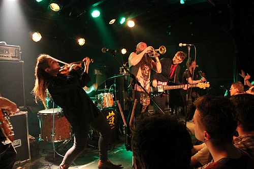 Jedna od odlika nastupa Kultur Shocka izvrsna je interakcija s publikom, tako da se, čak i ako ste u pedesetom redu, osjetite kao važan dio muzičkog spektakla. Frontmen Kultur Shocka bavi se, između ostalog, i kazalištem, što se da primijetiti u njegovom scenskom nastupu. Đino naprosto zna kako se animira publika i zna da nije dovoljno stati pred mikrofon i odraditi pripremljeni set pjesama. Ljudi iz predgrupe Bezbeli Apstraktlije nisu to znali, ali ima vremena - naučit će. U petak navečer dobili su priliku učiti od jednog od najboljih.