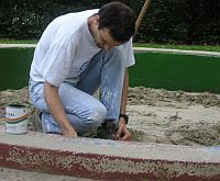 Prvo je s lopatom trebalo malo otkopati pješčanik, kako bi se zidovi obojili i ispod razine do koje dopire pijesak. |