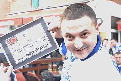Sugrađani našeg Venture pobrinuli su se da na stadion donesu najveću zastavu. I dok se Ventura nekoliko tisuća kilometara dalje nalazio na koncertu prevaziđenih Stone Temple Pilotsa, oni su bili posebno ponosni na "svog" Vedada Ibiševića, viđenijeg nogometaša BiH, kojem su i posvetili ovu zastavu.