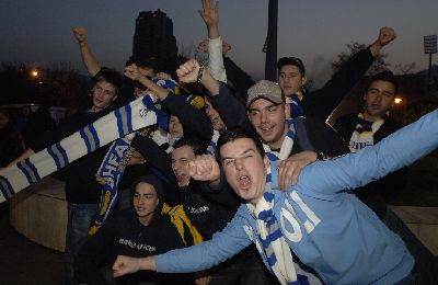 Oni ostaju vani, jer karata nemaju, ali to ih ne sprječava da nam veselo i otpjevaju još jednu i isprate na nas na stadion gdje nas već očekuju naša mjesta.