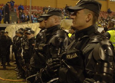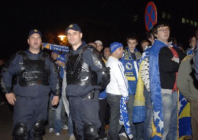Već četiri sata prije početka utakmice svi ulazi na stadion bili su opkoljeni, jer tog je dana najvažnije bilo što prije ući na mjesto na kojem bi se trebalo dogoditi nešto što će državu odvesti u bolje sutra. Nadzirali su ih specijalci, koji su nam ovom prilikom spremno pozirali. "Nećemo u Europu, hoćemo u Afriku", krilatica je koju su u šali prihvatili mnogi, pa i oni.