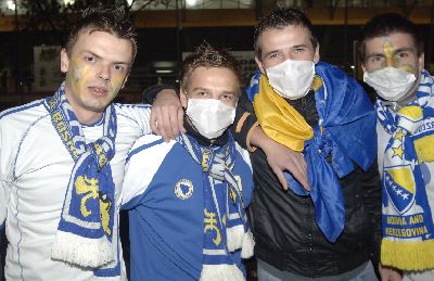 Kako bi se zaštitili od "portugalske svinjske gripe" ovi su mladići lica prekrili maskama. Za razliku od mnogih koji su pohrlili u Zenicu, oni nisu morali uzimati godišnje odmore i putovati satima do domovine. Inače, nevjerojatna je činjenica da se za utakmicu akreditiralo više od 200 novinara, i to s gotovo svih kontinenata.