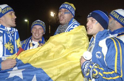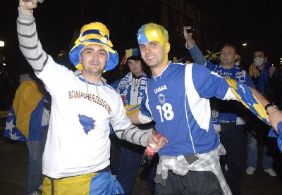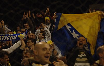 tada je stadion otkrio da postoji i dio gledatelja koji navija za Portugal. Ne, nije to Dodik, niti neki Srbin ili Hrvat. To je stotinjak Portugalaca koji su uz policijsku pratnju iz Sarajeva direktno sprovedeni na Bilino polje, s kojeg su isto tako i otišli. Od tog trenutka stadionom će sve češće neometano oriti njihove slavljeničke pjesme.