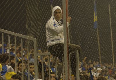 A navijači su postajali sve mirniji, pa čak je i ovaj druker odmorio dlanove, prije nego li će ga policajci zamoliti da se skine s ograde.
