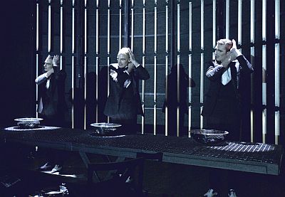 Prvi put smo u HNK-a ušli s nekim očekivanjima. "Ovo bi moralo biti dobro, s puno svjetla i raznih efekata", pomislili smo i na koncu se pomalo razočarali. Sama scena vrlo je dobro postavljena, u tri polukruga - jedan u drugom, od manjeg prema većem, poput kakve ovojnice, što je olakšavalo izmjenu scene. Uz neizbježnog Radu Šerbedžiju na daske koje život znače popelo se još šestero glumaca, valjda zbog toga što se Tesla još i danas spominje kao genije sa sedam glava.