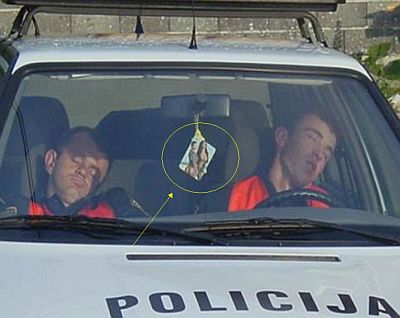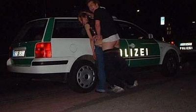 Istovremeno oštrom njemačkom oku nisu promakle guzice i sise koje ponosno vise na policijskom retrovizoru