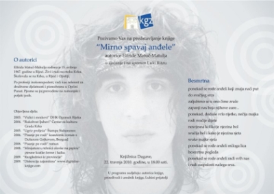 Napisala sam knjigu koja želi probuditi uspavane savjesti, pobuditi kod svakoga od nas pojedinačno preispitivanja samih sebe; pronalaženja svoje uloge u životu jednog naroda i konačno u izgradnji kolektivnog karaktera tog istog naroda - karaktera po kojemu će nas drugi prepoznavati. "Mirno spavaj anđele" jest književni aktivizam na moj način. I kako nitko ne bi smetnuo s uma da je 22. travnja pok. Luka Ritz imao svoje ljudsko pravo na proslavu rođendana; predstavit ćemo knjigu upravo tog dana u knjižnici "Dugave" u 18.00 sati.
