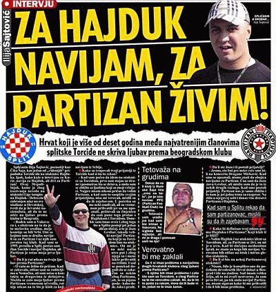 Splićanin Ilija Šajtović, poznatiji kao Čika Šaja, kao jedan od "viđenijih" pripadnika Torcide ide na utakmice Hajduka. Ipak, kako kaže u intervjuu za Kurir, navija za Hajduk, ali živi za Partizan! Ovaj 30-godišnjak, kome je zbog izazivanja nereda na utakmici Lige šampiona Hajduk - Debrecin zabranjen ulaz na sve stadione u Hrvatskoj, tvrdi da je hrvatski nacionalista, ali da to ne utiče na ljubav prema klubu iz Beograda.
