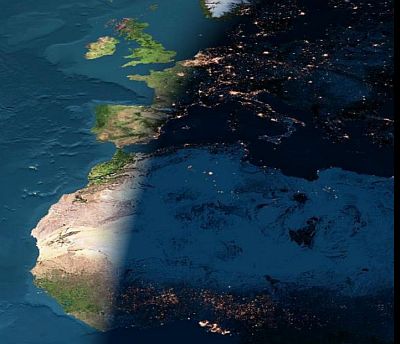 Ova satelitska snimka prikazuje Europu u trenutku kada na nju pada noć. Ne znam zašto (retorika, ne tražim odgovor), ali tamo kuda mi je poletjelo oko popriličan je mrak u što se letimičnim pogledom možete uvjeriti i sami ...
