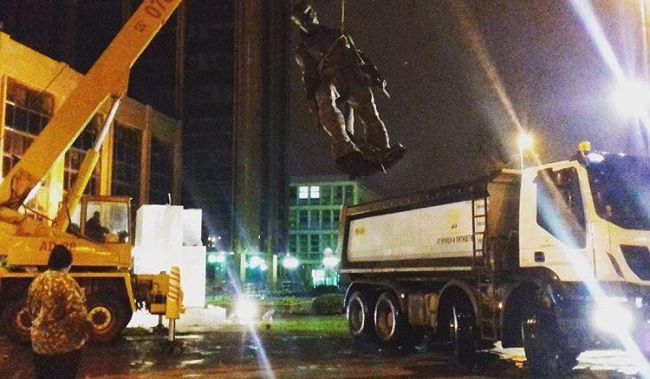 Uklanjanje spornog spomenika (FOTO: Nova.mk)