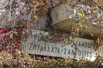 Zarasli balkoni i natpisi na grčkom