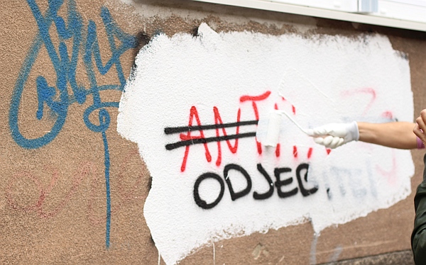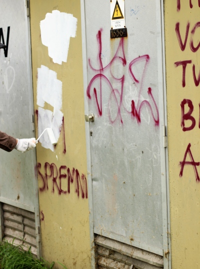 Akcija je započela na Maksimiru, gdje je uklonjeno par "kukića", kako antifa ekipa "tepa" kukastim križevima, simbolu prilično popularnom skupinama zabludjelih zagrebačkih ovčica koje ih ostavljaju po gradskim zidovima. Međutim, najprije nam valja reći što je potrebno imati za ovakvu akciju: kantu bijele boje, dvije četke i rukavice. Sve što vam treba, dakle, naći ćete u vlastitoj garaži. Upustite se u avanturu prefarbavanja nacističkih simbola u svom kvartu. Vrlo je zabavno. (FOTO: Lupiga.Com)