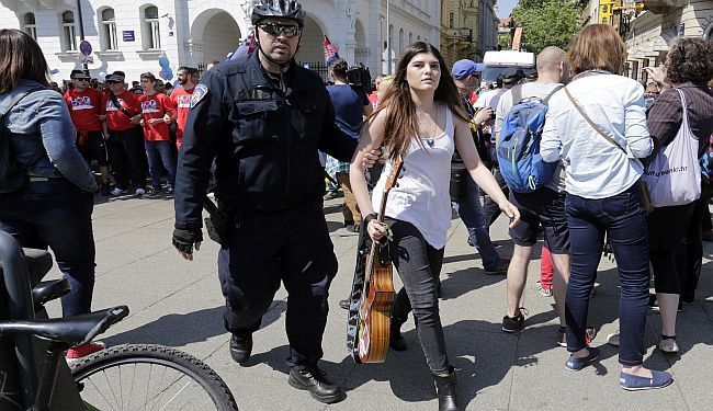 Nakon incidenta praćenog popularnim songom iz mjuzikla „Jalta, Jalta“, kad je policija raščistila cestu pred kolonom, ona je krenula dalje. Iza kordona policije prosvjednici sa Strossmayerovog trga raširili su transparente, a djevojke iz Drum&Bijesa bubnjale, i bubnjale, i bubnjale – no procesiji iz koje su mahali i rukom pokazivali srca kao da nije bilo kraja.