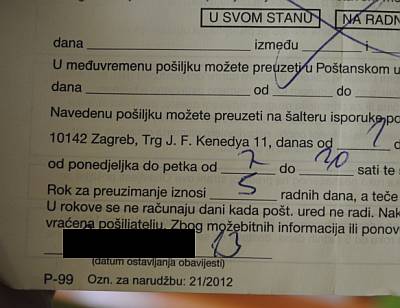 „Čim sam vidio obavijest u oči me 'ubola' adresa na kojoj svoju pošiljku trebam podići, jer se poštaru kao i obično nije dalo penjati na treći kat i osobno mi uručiti preporučenu poštu. Pitam se samo kako je moguće da jedna takva gigantska tvrtka, koja ima preko 10.000 zaposlenih napravi ovakav jedan gaf“, kaže naš čitatelj koji nam je poslao i dvije fotografije na kojima se jasno vidi greška na obavijesti.