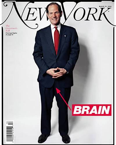 Na temu umiješanosti njujorškog guvernera Eliota Spitzera u aferu s prostitucijom, The New York je izašao s ovom naslovnicom. Ne treba reći kako se Spitzeru to nimalo nije svidjelo.