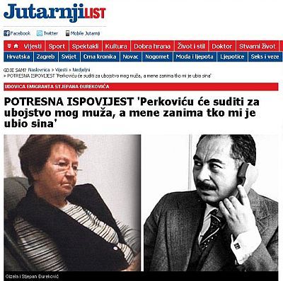 "POTRESNA ISPOVIJEST: Perkoviću će suditi za ubojstvo mog muža, a mene zanima tko mi je ubio sina". Tako je opremljen člana u Jutarnjem listu. U podnaslovu teksta ističe se: "Gizela Đureković (83) za Nedjeljni prvi put iznosi cijelu istinu o svome pokojnom suprugu."