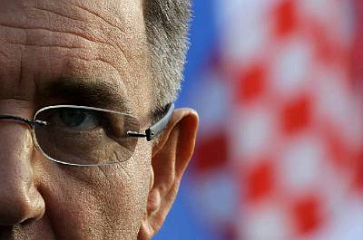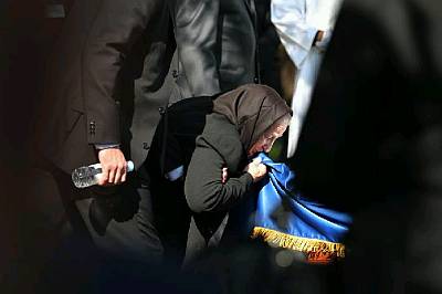 Zagreb, 04.10.2012. - Ceremonija posljednjeg ispraćaja Borisa Šprema, preminulog predsjednika Hrvatskog sabora, na groblju Mirogoj. Majka Marica Šprem prije konačnog oproštaja poljubila je hrvatsku zastavu. Snimio Davor Puklavec / PIXSELL