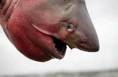 Rijeka, 22.04.2012. - Morski pas Volonja zapleo se u mreže ribarice Mali Mate, a izvukla ga je plivarica Ogorje vlasnika Ante Boćine. Pas dugačak 4,96 metara ulovljen je oko jedne nautičke milje od riječkog lukobrana i napravio je popriličnu štetu na mrežama. Snimila Tea Cimaš / CROPIX