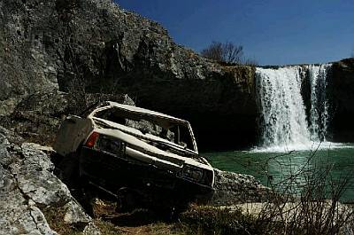 Bačinska jezera, 29.03.2007. - Kako izgleda zemlja čija himna počinje riječima Lijepa naša domovino? Sudeći prema ovim fotografijama, ne baš slikovito. Jer kako objasniti da je grupa entuzijasta okupljena u udruzi Zelene stope potpomognuta tvrtkom Renault, Cios i časopisom Auto bild u proteklih 10 godina iz nacionalnih parkova i parkova prirode Hrvatske izvadila preko 15.000 odbačenih auto olupina. A koliko samo još "četvorki", fičeka i pećnica skotrljanih niz padine čeka da ih netko pokupi i odveze na reciklažno dvorište. Koliko još divljih odlagališta čeka sanaciju? Odgovor možda zna vjetar koji mreška zelenu boju Bačinskih jezera. Snimio Romeo Ibrišević