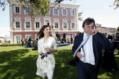 Poreč, 17.05.2012. - Istarski župan Ivan Jakovčić predstavio je svoje bezalkoholno piće Gineta s kojim je krenuo u poduzetničke vode. Jakovčić se s voditeljicom Tatjanom Jurić dovezao u dvorište palače Pollesini u oldtimeru Topolinu gdje su gostima predstavili Ginetu. Ginetu je napravio u suradnji s Jamnicom, a radi se o bezalkoholnom gaziranom piću na bazi Smrikve. Snimio Srećko Niketić / CROPIX