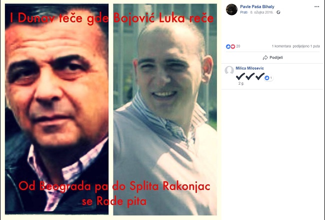 A spomenute fotografije, skinute s profila Pavla Bihalija, dokumentiraju da je među najčešće glorificiranim članovima srbijanskog podzemlja čovjek poznatiji kao šef Zemunskog klana Luka Bojović, bivši pripadnik Srpske dobrovoljačke garde i suradnik kriminalca Željka Ražnatovića Arkana.