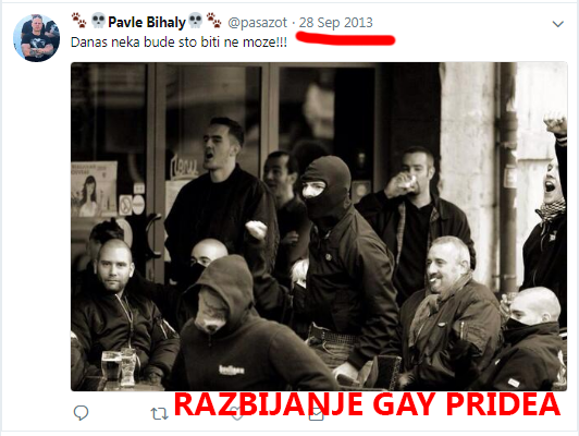 Nakon te 2010. godine, uslijedile su tri godine neodržavanja Parade ponosa, da bi Bihali 28. rujna 2013. godine, na dan kada je konačno trebala biti održana - pa je ipak ponovo otkazana, jer tadašnji ministar unutrašnjih poslova Ivica Dačić nije mogao garantirati sigurnost sudionika - objavio fotografiju huligana uz poruku "Danas neka bude što biti ne može!" S obzirom na nasilje koje je pratilo parade ponosa u Beogradu, ovakav prizor doima se kao zastrašujuća podrška nastavku takvoga ponašanja.