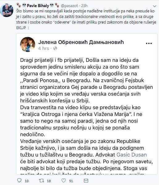 Ovih dana, kada je država Srbija predvođena deklariranom lezbijkom, premijerkom Anom Brnabić, pa usprkos minornim ili nikakvim pomacima na polju zaštite prava seksualnih manjina omogućava održavanje Parade, Bihali vjeruje u obračun s organizatorima pravnim putem.