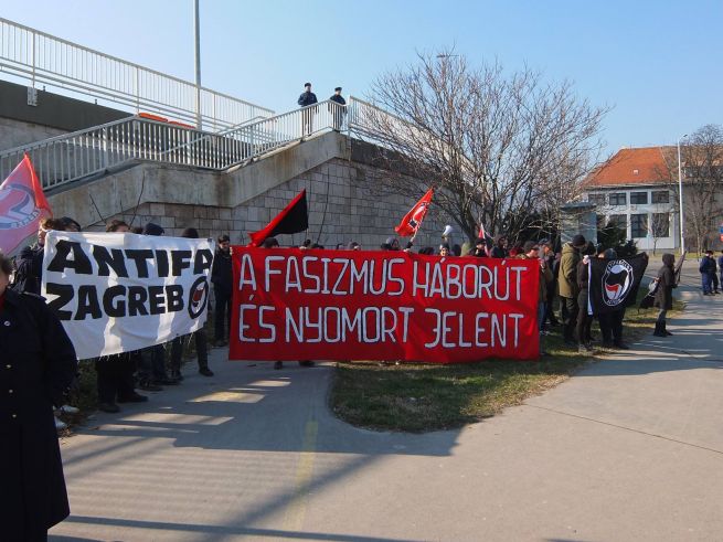 Na poziv Antifa Budapest, zagrebački, šibenski i beogradski antifašisti pružili su podršku mađarskim drugovima na protestu protiv neonacističkog marša sjećanja. Okupljanje koje nema fiksan datum, već se održava za vikend najbliži 11. veljače, ove je godine prigodno „palo“ na Valentinovo.