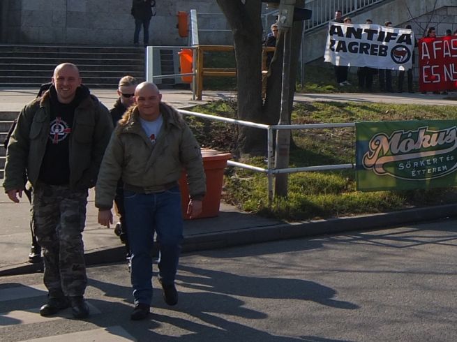S druge strane, uz fašiste u vojnim uniformama, stajali su i pro-fašistički orijentirani pristaše ekstremno desne stranke Jobbik, zakonom zabranjeno militantno krilo reformirano u kulturno-umjetničko društvo. Policija nije dopuštala da se ove dvije skupine sretnu, ali dobacivanja je bilo.