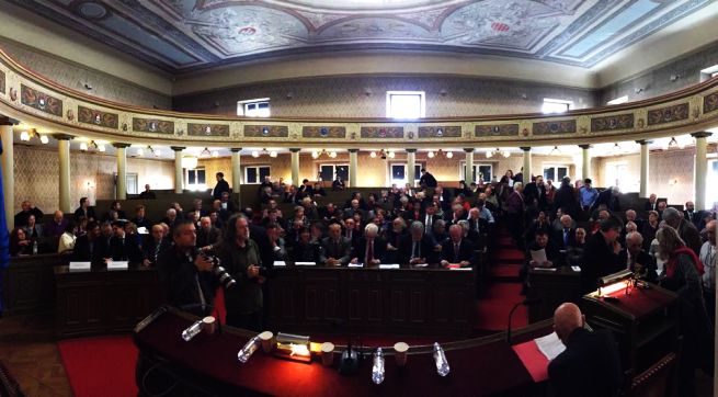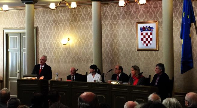 U prvom dijelu skupa javnosti su se obratili inicijatori Antifašističke lige. Juraj Hrženjak, antifašistički borac i ugledni pravnik, u više je navrata istaknuo štetno djelovanje Crkve u javnom prostoru po pitanju degradacije antifašističkih vrijednosti.