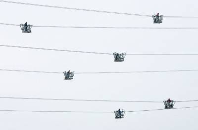 Fotografija godine i pobjednik kategorije Svakodnevni život - Vlado Kos, veljača 2010. godine, Ernestinovo - Radnici firme "Dalekovod" dvadesetak metara iznad zemlje "vise" u košarama pomoću kojih razvlače žice za novu trasu međunarodnog dalekovoda