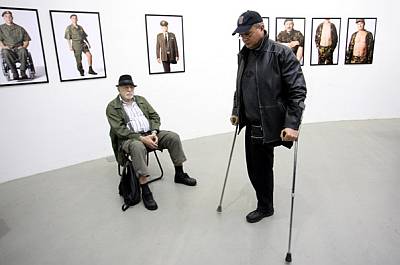 Kategorija Zabava i umjetnost - Boris Ščitar, lipanj 2010. godine, Zagreb - Jedan od invalida prolazi kraj zauzetog stolca na otvaranju izložbe Damira Hoyke s portretima hrvatskih ratnih invalida