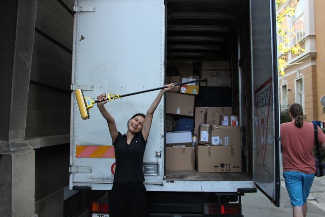 9.05 Nakon što je ukrcana i posljednja kutija lijekova preostalo je samo ubaciti i brisač podova. Kamion je nakrcan!