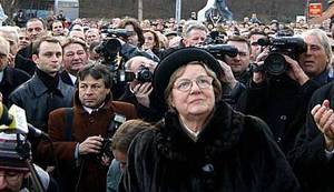 Moj prijatelj ide naprijed, probija se kroz gomilu, a ja za njim nosim njegovu veliku fotoreportersku torbu, tobože i ja na zadatku. Probili smo se do same biste, tu je gomila fotoreportera, snimatelja s televizije, bista još prekrivena bordo tkaninom i nekoliko mikrofona koji su čekali govornike. A oni se ubrzo i pojaviše, gomila ljudi se razmicala, aplaudirala im, dovikivala i ja se htjedoh ukloniti, ali nisam imao kamo. Iza mene je bio zid kuće, sa strana gomila ljudi, a ispred bista opkoljena već spomenutim mikrofonima. Ljudi na koje se čekalo bili su: Ankica i Miroslav Tuđman, Andrija Hebrang, Ivić Pašalić, Ljerka Mintas-Hodak i Miroslav Ćiro Blažević. Možda je bio još netko od tadašnjih hadezeovskih teškaša, ali se ne sjećam sad baš svih.