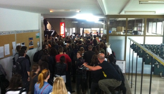„Pročitajte ga dva puta“, čulo se od okupljenih studenata koji su očitovanje htjeli čuti odmah. Bilo je među njima i nekoliko onih koji su tu zalutali slučajno, na putu prema referadi koja je, zbog izvanredne situacije na fakultetu bila zatvorena do završetka sjednice. Pa su se i sami pridružili negodovanju protiv ovakvog načina vođenja akademske ustanove.