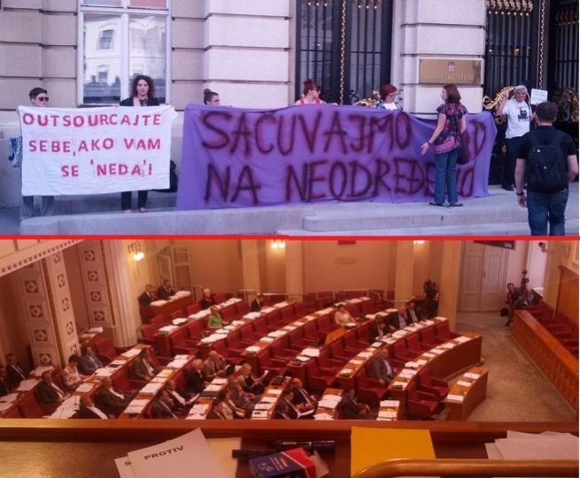 "Odbijen je i amandman o zabrani noćnog rada za trudnice i majke koje doje", javile su aktivistice Ženske fronte. To je samo jedan u nizu amandmana koji je odbijen u Saboru.